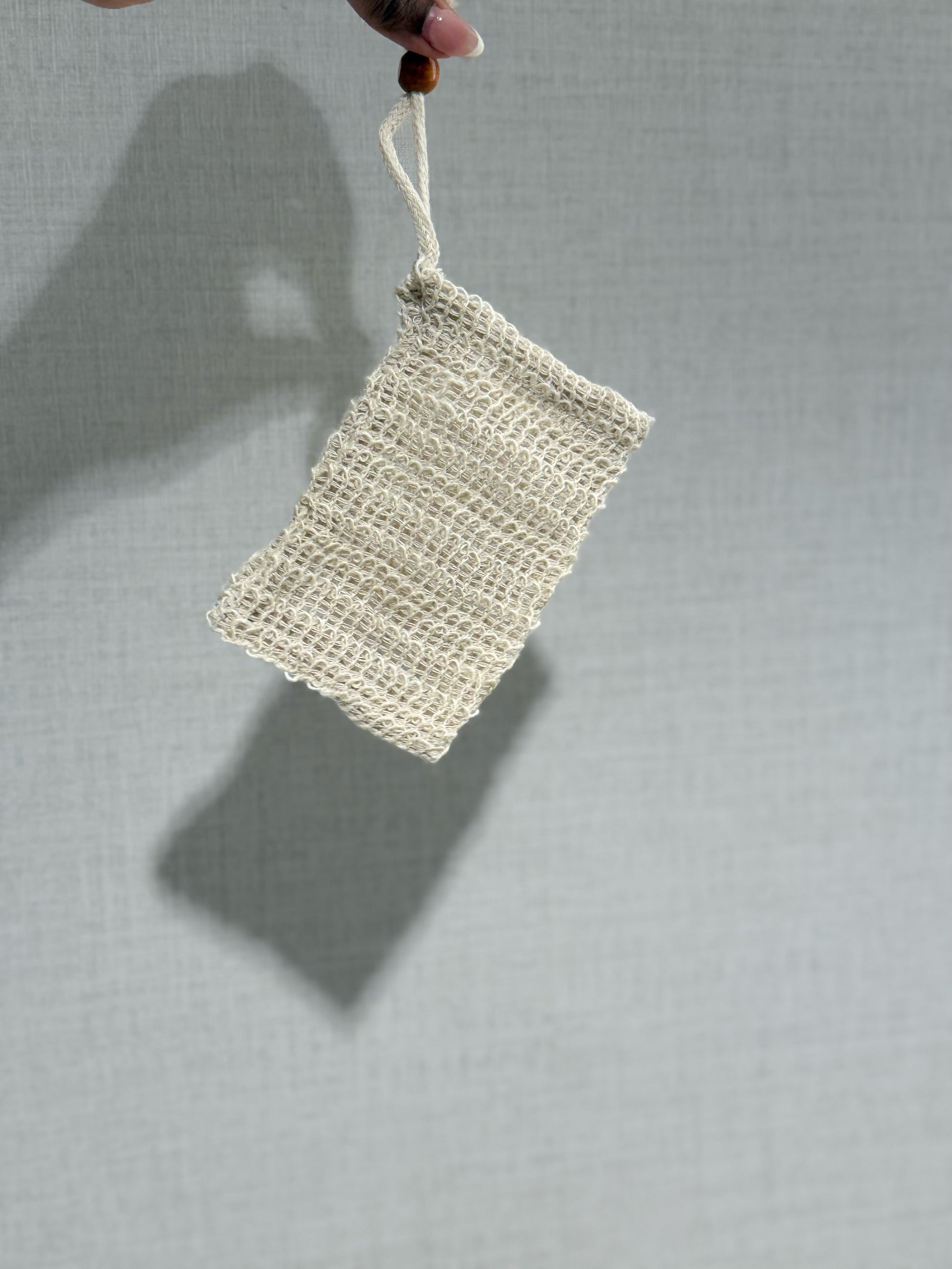 Crafted from natural, skin-safe materials, the exfoliating bag is perfect for bar soaps, enhancing lather while providing a mild scrub.